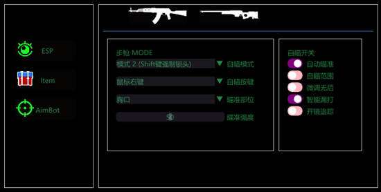 超级人类疾风辅助是一款内部的透视自瞄功能为主的超级人类辅助(超级突破)软件,主要功能就是透视和自瞄瞄准,辅助限制物质载具等功能,完美解决了玩家小伙伴枪法差、物质不好找、吃鸡困难等问题,并且本站的软件秉承着经济实惠的原则,让玩家享受高级内部待遇。超级人类辅助疾风的启动方法:首先关闭杀毒软件然后复制你的卡号打开下载地址输入进去后下载下来然后解压出来管理员身份运行辅助。开启方式:1、打开网易云音乐,打开桌面歌词,将歌词锁定在桌面2、右键辅助,以管理员身份运行,输入卡密登录3、登录steam,上游戏4、游戏设置成无边框模式5、在游戏大厅,按F12激活6、开启之后左上角会有菜单,歌词会消失Home键 显示/隐藏菜单方向键↑↓←→选择功能 绿色是开启,红色是关闭自瞄默认锁胸,按住Shift锁头F7开启战斗模式(...